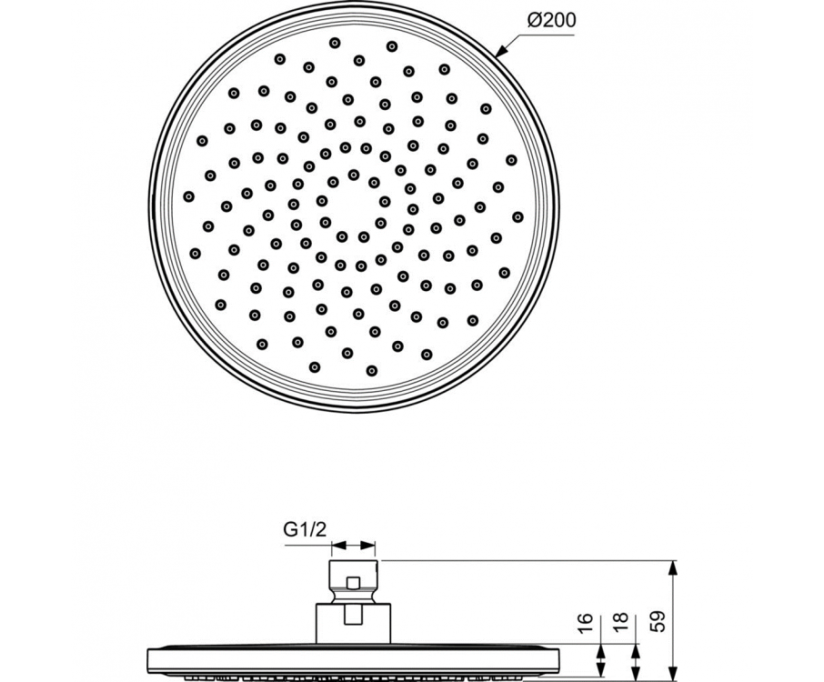 • Верхний душ Ø200 мм
