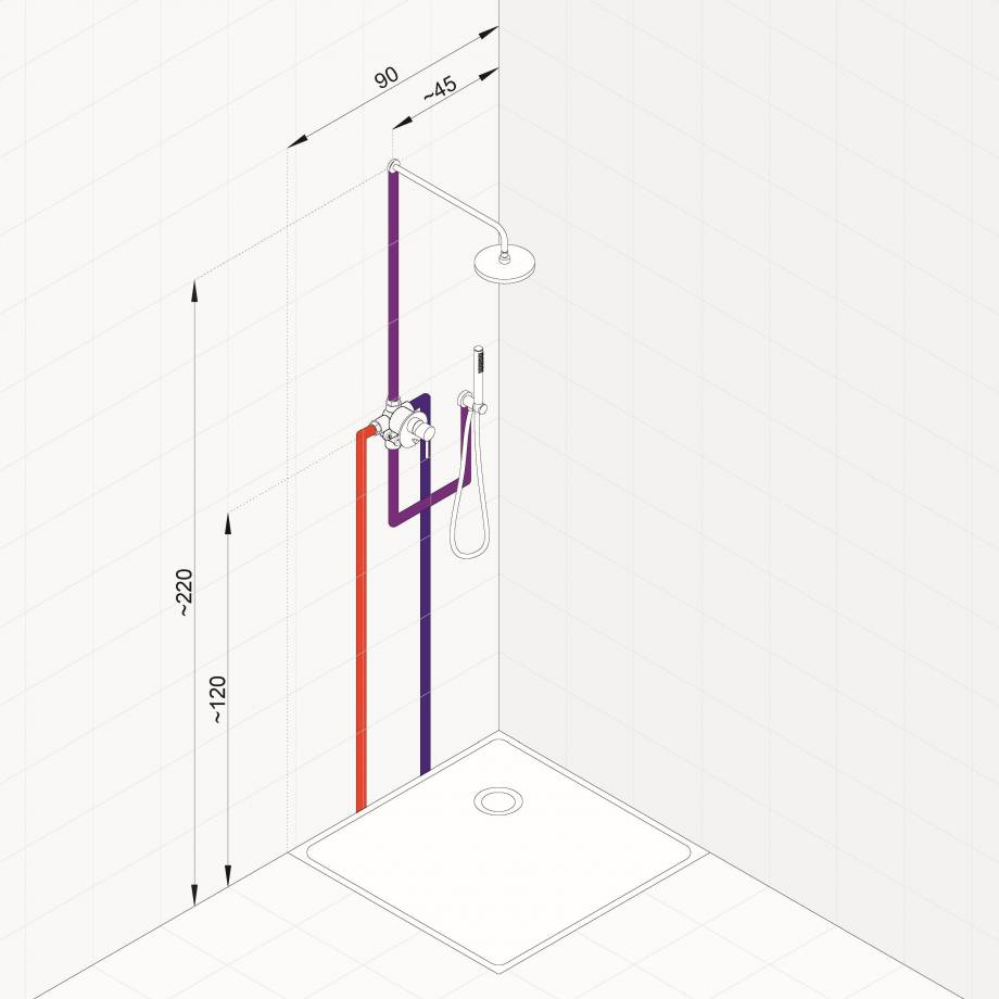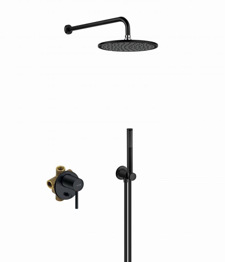 - Состав комплекта: верхний душ, душевой гарнитур, смеситель для душа, шланговое подключение
