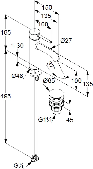 - В комплекте со смесителем поставляется донный клапан (входит в стоимость)