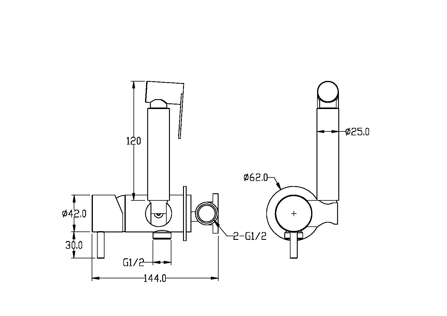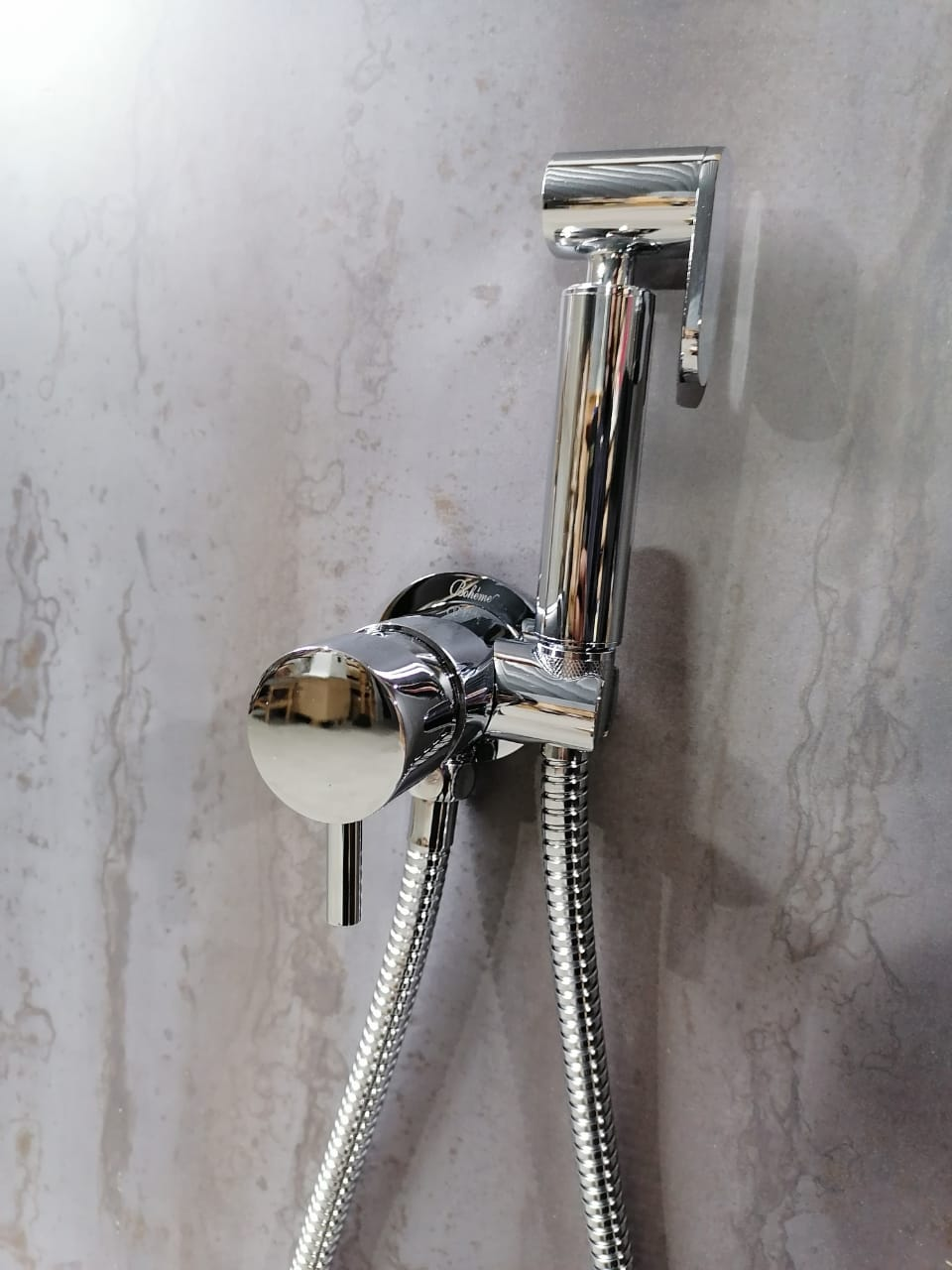 Гигиенический душ со смесителем. Управление однорычажное. Материал латунь. Гарантия: 5 лет.